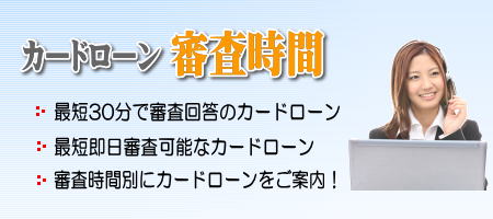 カードローンを申込みする時に気になる点として審査時間があります。借入の申込みをしてから審査結果が分かるまでどれくらいかかるのか?借入を急いでいる人であればなおさら気になることで、又、審査時間が長く結果借りられなかった場合、その後の予定も変更しなければならない時もあります。